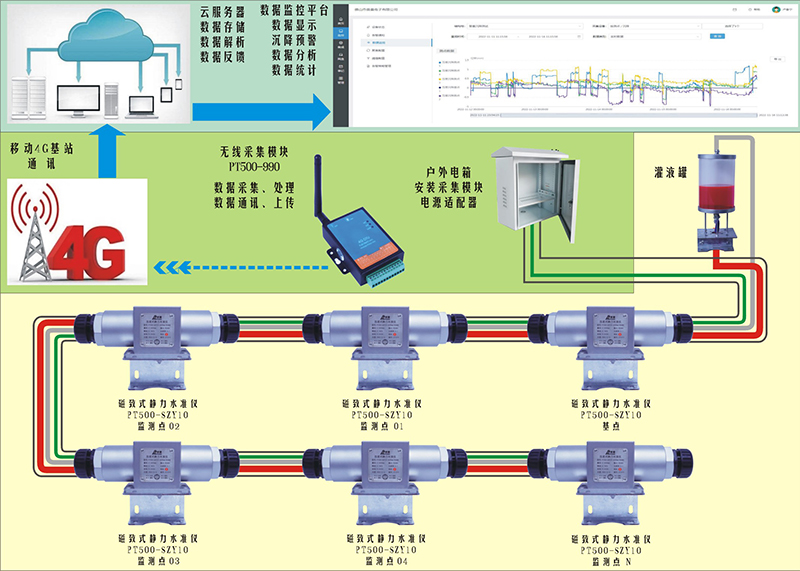 液壓式靜力水準儀在沉降監(jiān)控系統(tǒng)應(yīng)用液壓式差壓式靜力水準儀沉降監(jiān)測系統(tǒng)應(yīng)用于地基、基坑、隧道、軌道、高鐵、公路、山體、邊坡、大壩、電站、基塔、大型儲灌等基礎(chǔ)設(shè)施沉降長期監(jiān)測場合。